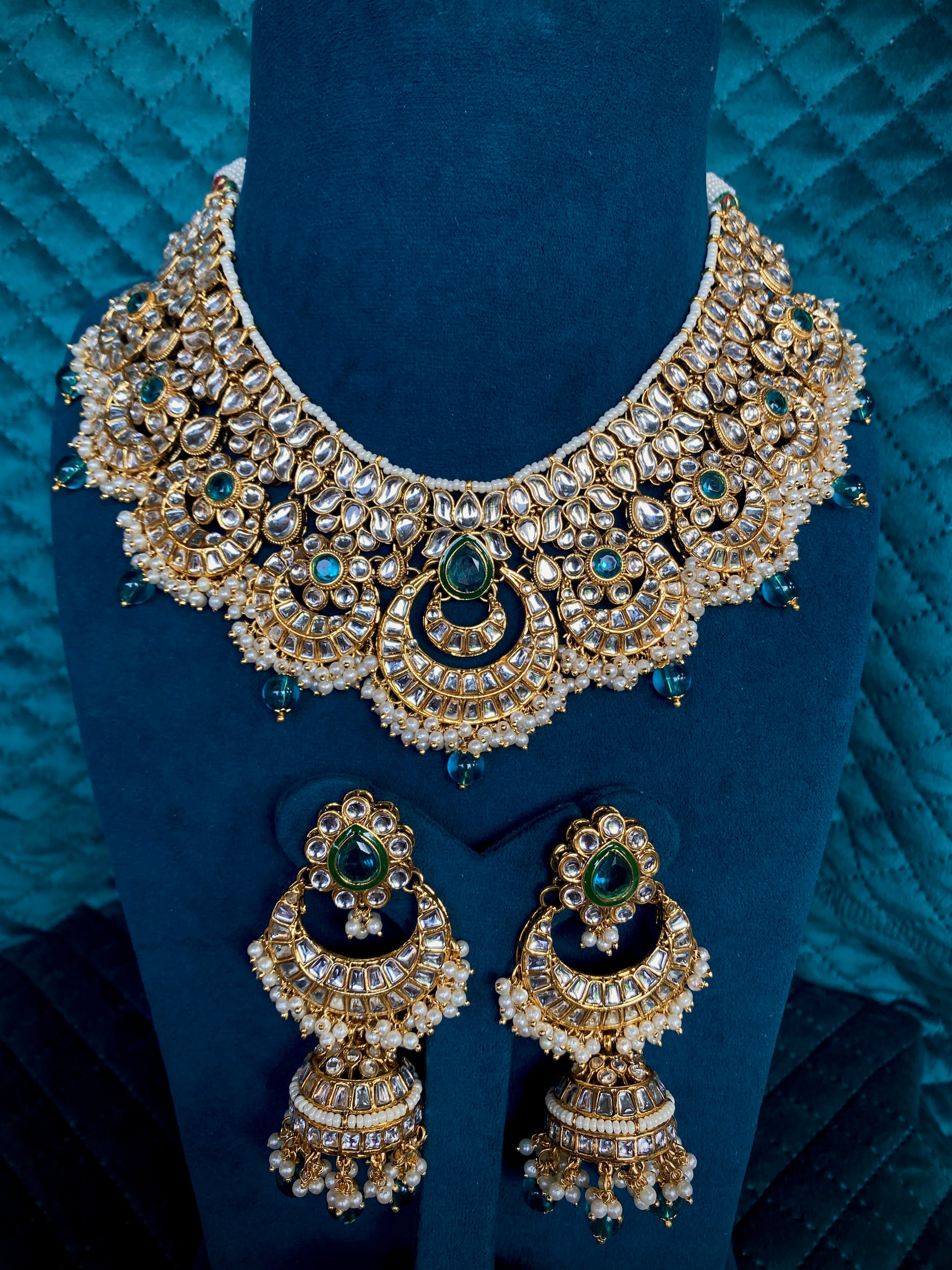 Meticulously crafted from top-quality alloys and adorned with the captivating charm of Kundan detailing, our Kundan Necklace is nothing short of a masterpiece. It's the embodiment of our commitment to luxury, designed with the finest materials and utmost attention to detail.